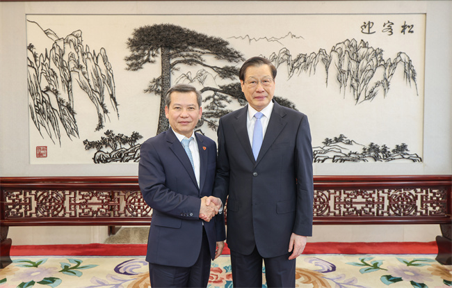 中国最高检常务副检察长童建明、最高法副院长沈亮、最高检检委会副部级专职委员史卫忠及越南驻华大使范清平参加会见。